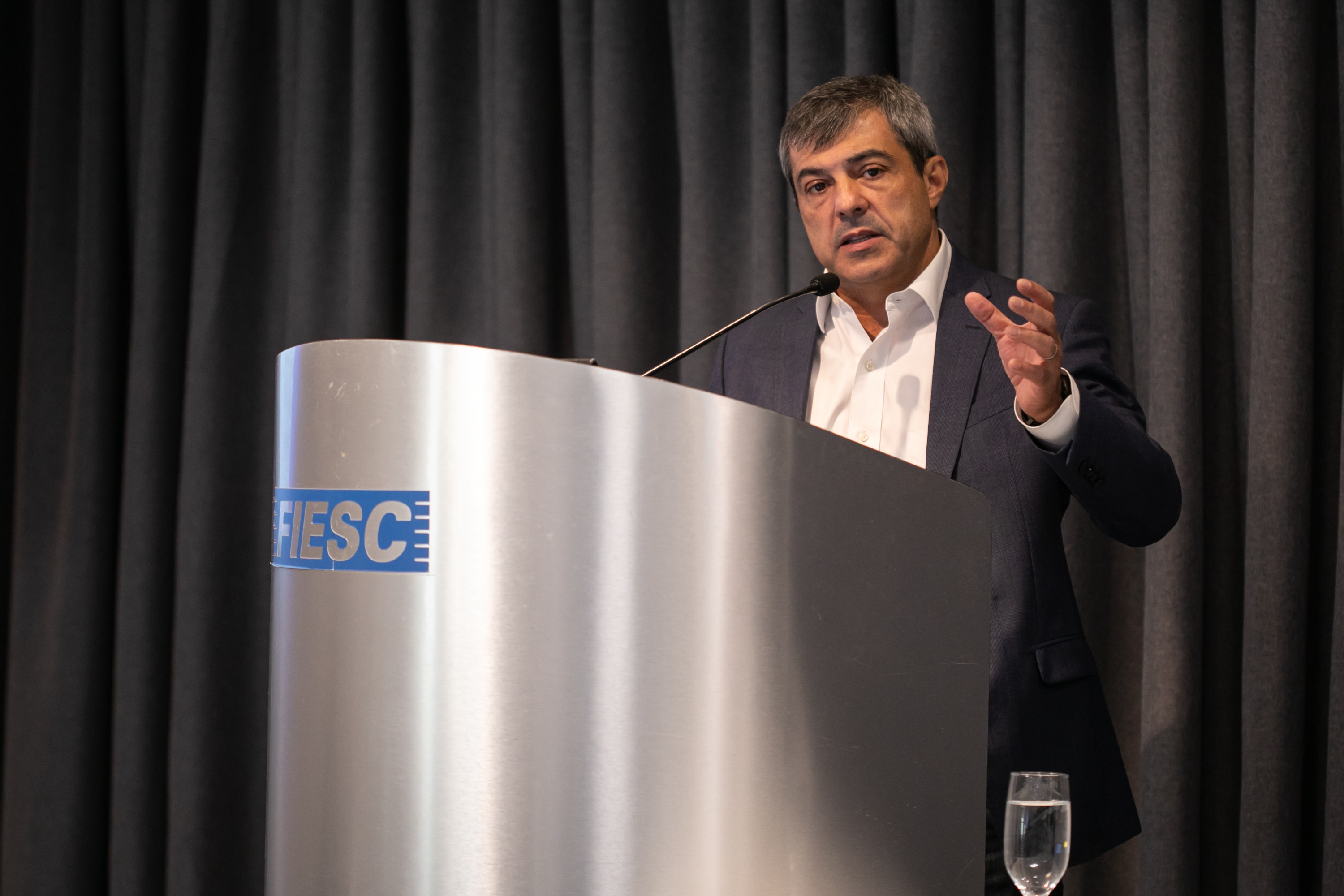 Florianópolis, 19.04.2024 - O economista-chefe do Banco Votorantim, Roberto Padovani, disse nesta sexta-feira (19) na reunião de diretoria da Federação das Indústrias de SC (FIESC), que os juros no Brasil estão “bizarramente altos”. Segundo ele, com o atual nível de inflação, não faz sentido ter um juro real tão elevado e existe amplo espaço para corte. Na avaliação do economista, o crescimento da renda brasileira acima da inflação é positivo no curto prazo e traz impacto positivo sobre a concessão de crédito, com queda na inadimplência. “Se temos renda indo bem, crédito indo bem, isso aumenta a confiança do empresário e do consumidor”, explica.
