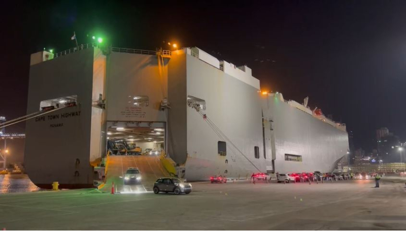 Florianópolis, 8.8.2023 - O Porto de Itajaí recebeu neste começo de agosto (3 e 4) dois navios para operação 'Roll-On/Roll-Off', que envolve cargas sobre rodas. O primeiro a atracar foi o Cape Town Highway, que desembarcou 281 veículos do grupo BMW.
