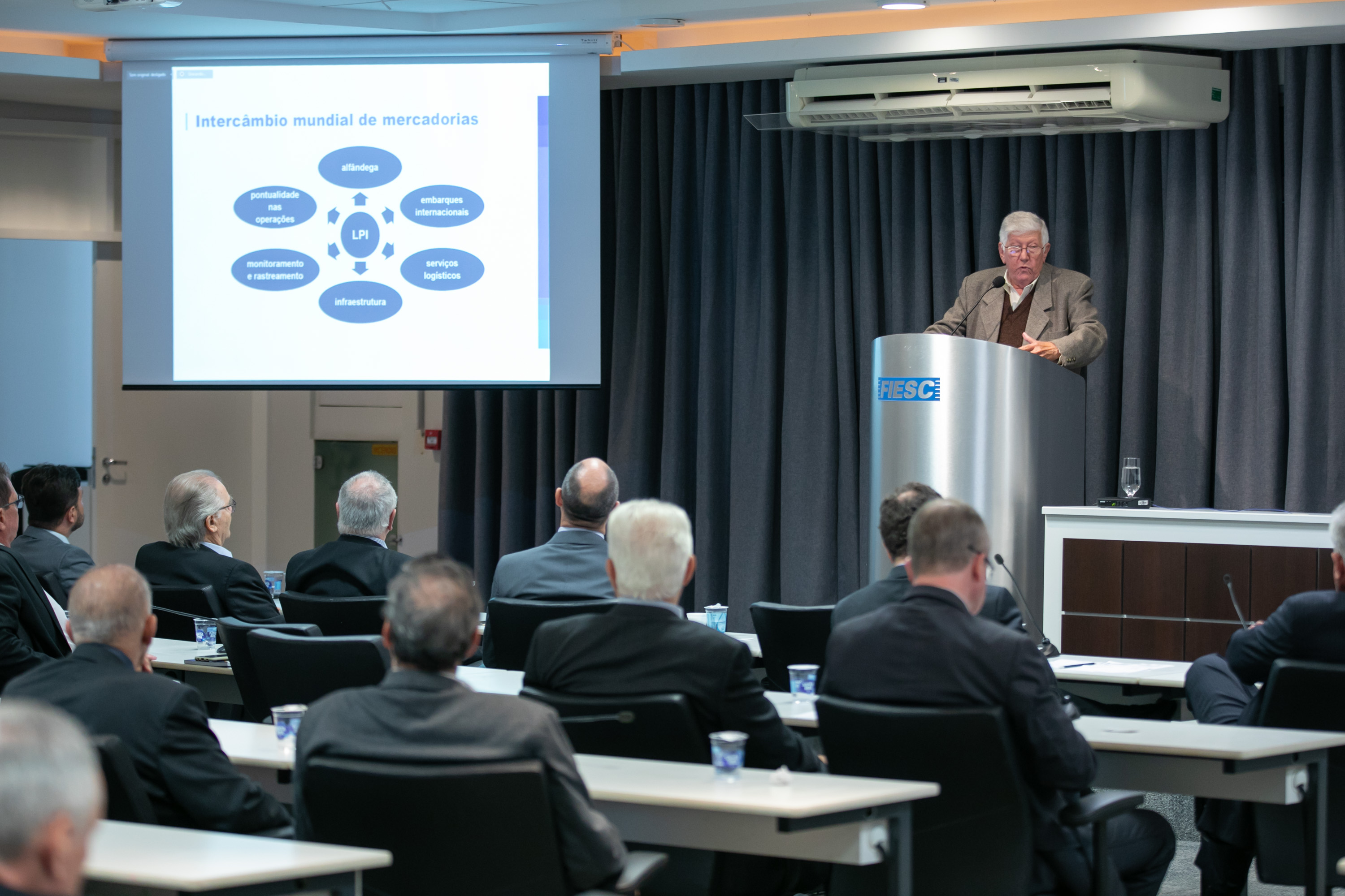 Florianópolis, 22.9.2022 - A precariedade da infraestrutura de transporte potencializa a elevação dos custos logísticos da indústria catarinense, com efeitos diretos, ou seja, o próprio custo de transporte, e indiretos, ao obrigar as empresas a elevar estoques. O alerta foi feito pelo professor Carlos Taboada, do Laboratório de Desempenho Logístico da Universidade Federal de Santa Catarina (LDL/UFSC), à diretoria da Federação das Indústrias de Santa Catarina (FIESC), reunida nesta sexta-feira (23). O especialista defendeu a participação ampla das indústrias na pesquisa que a FIESC está realizando para determinar os custos logísticos da indústria de Santa Catarina.